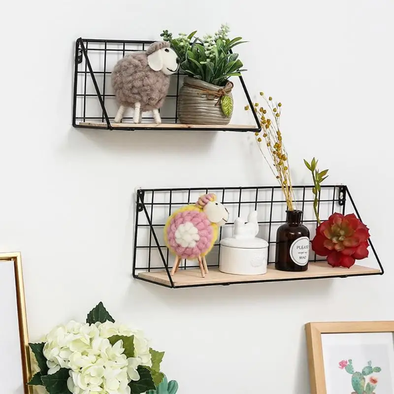 استعارات من خشبية الحديد رف جدار الحائط تخزين الرف منظمة لغرفة النوم المطبخ ديكور المنزل كيد غرفة DIY الجدار الديكور حامل